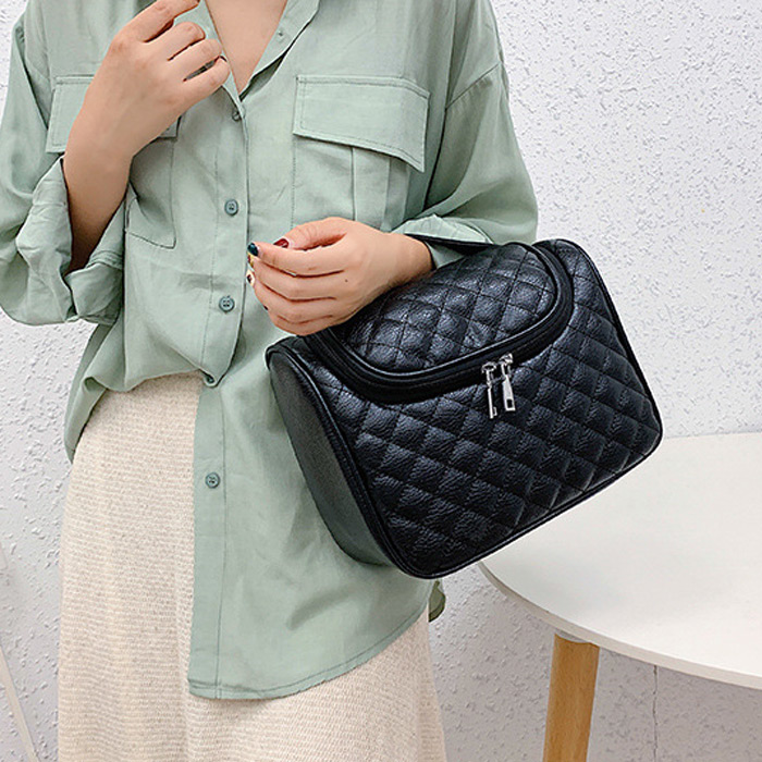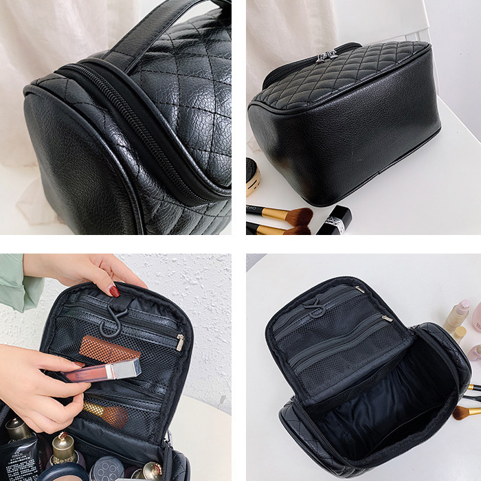 กระเป๋าเครื่องสำอางแบบซิป ทำจากหนังเทียม พร้อมหูหิวด้านบน น้ำหนักเบา จุของได้เยอะ