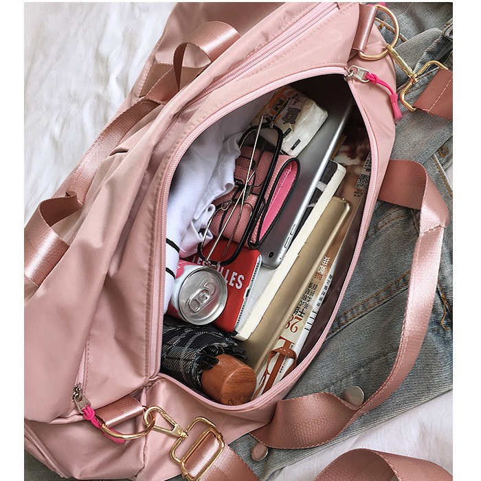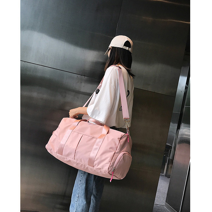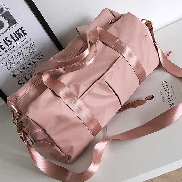 กระเป๋าเดินทาง กระเป๋าฟิชเนส สีชมพูผ้าไนล่อนกันน้ำ แบ่งเป็นช่อง ๆ ใช้งานสะดวก