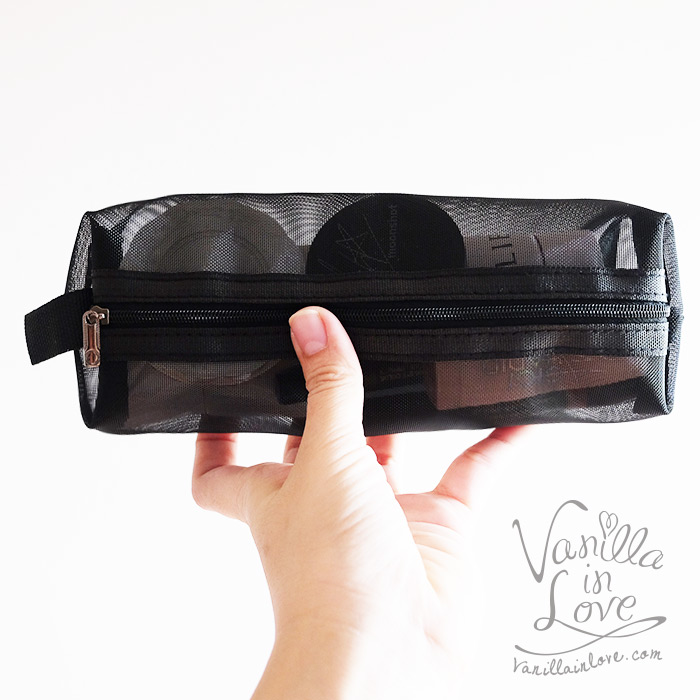 กระเป๋าเครื่องสำอางตาข่ายสีดำ แบบซิปด้านบน ทำจากผ้าตาข่ายดำ มองเห็นด้านใน น้ำหนักเบา พกพาสะดวก ใส่ในกระเป๋าสะพายได้ ตัวกระเป๋าตั้งได้ อยู่ทรงสวยงาม
