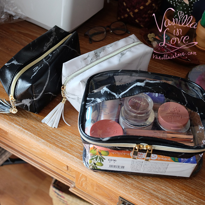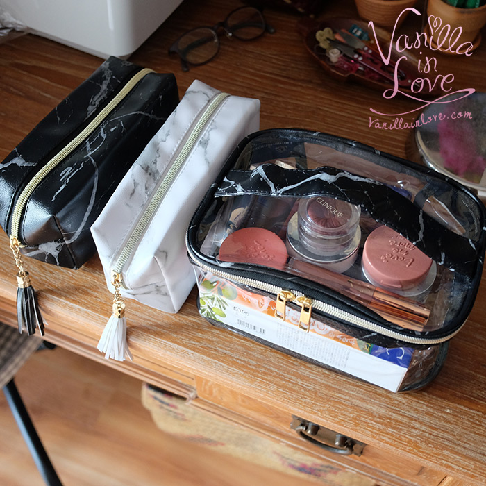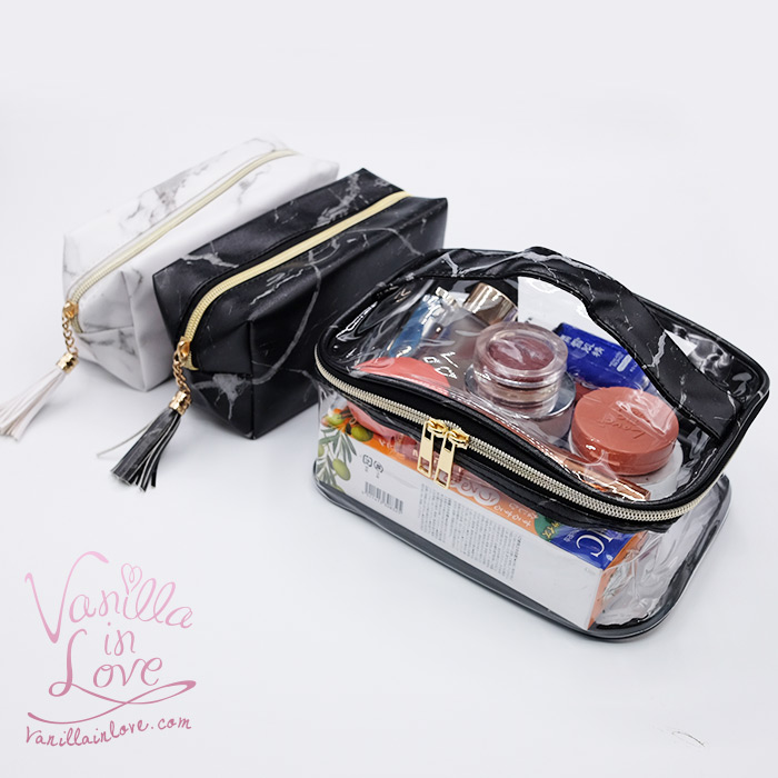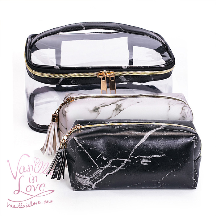 set กระเป๋าใส่เครื่องสำอาง 3 ชิ้น ลายหินอ่อน สีขาวดำ