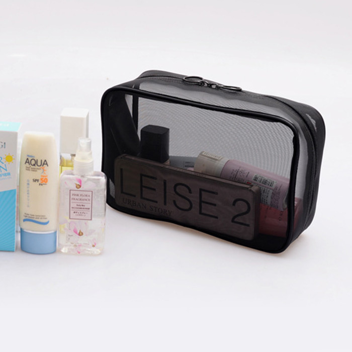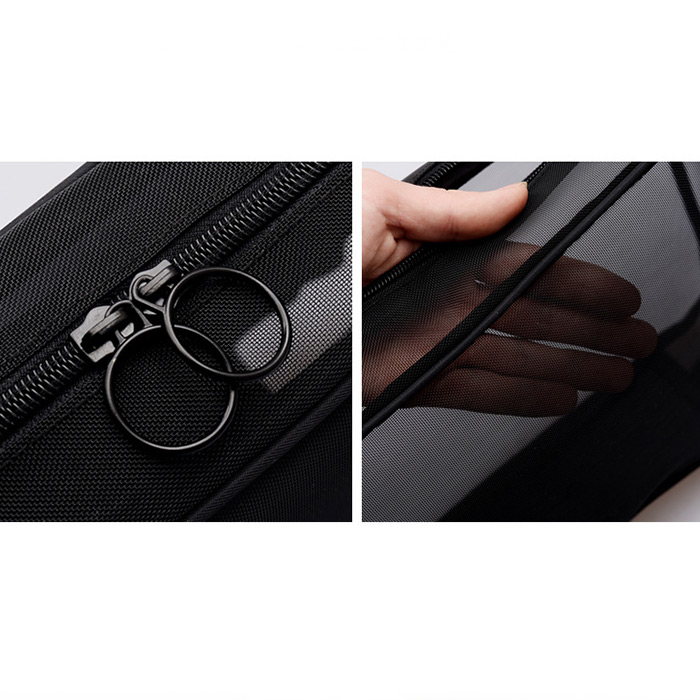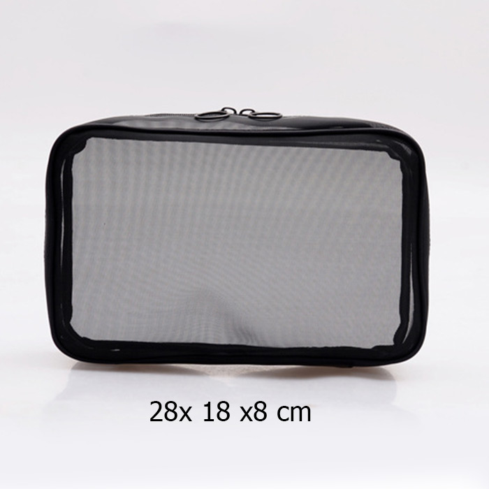 ขนาด 28 x 18 x 8 cmกระเป๋าเครื่องสำอางตาข่ายสีดำ แบบซิปด้านบน ทำจากผ้าตาข่ายดำ มองเห็นด้านใน น้ำหนักเบา พกพาสะดวก ใส่ในกระเป๋าสะพายได้ ตัวกระเป๋าตั้งได้ อยู่ทรงสวยงาม