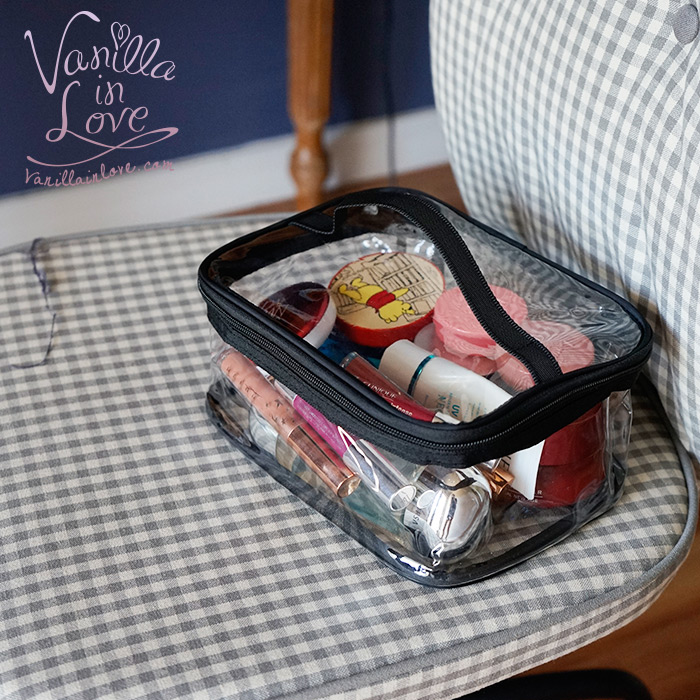 กระเป๋าเครื่องสำอาง แบบใส พร้อมหูหิ้วสีดำ