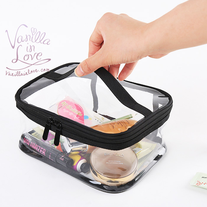 BG31 กระเป๋าเครื่องสำอาง แบบใส พร้อมหูหิ้วสีดำ