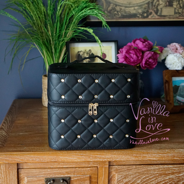 BG45 กระเป๋าเครื่องสำอางทรงแข็ง ขนาดใหญ่ จุของได้เยอะมาก มีชั้นลอย 2 ชั้น สำหรับแยกเครื่องสำอาง แข็งแรงทนทานด้านนอกทำจากหนังเทียม PU สีดำ ชั้นด้านในมีชั้นลอยสองชั้น เช็ดทำความสะอาดง่าย ใส่ naked ได้ เหมาะสำหรับใส่เครื่องสำอางค์วางบนโต๊ะเครื่องแป้ง ไว้ในรถ หรือพาพาเดินทางไปต่างจังหวัด
