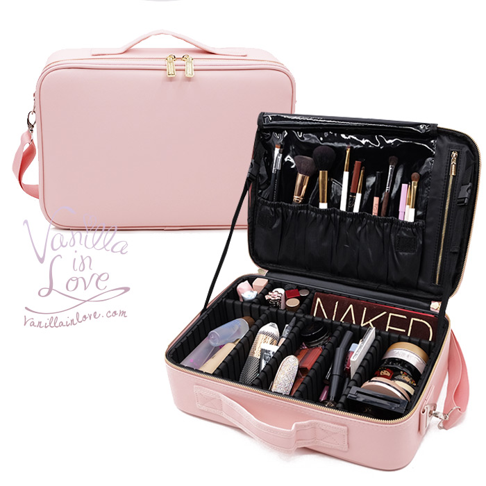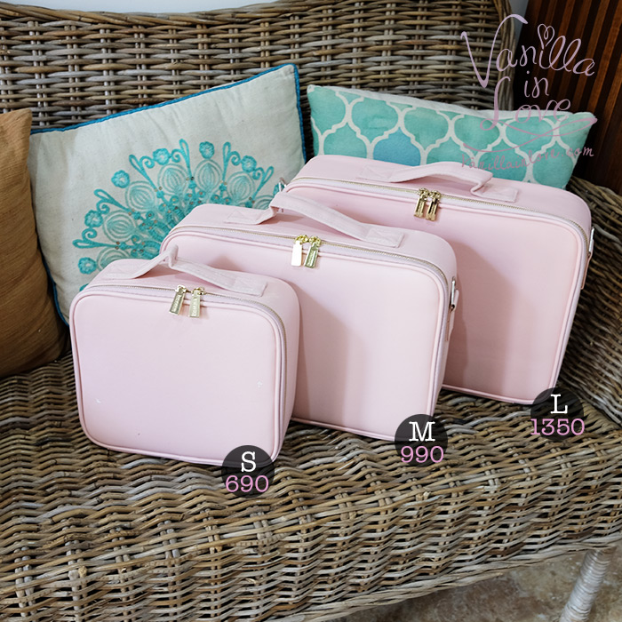 BX36 กระเป๋าเครื่องสำอางแบ่งช่อง Vanilla in love หนังเทียมแคนวาสชมพูอ่อน ไซส์ M
