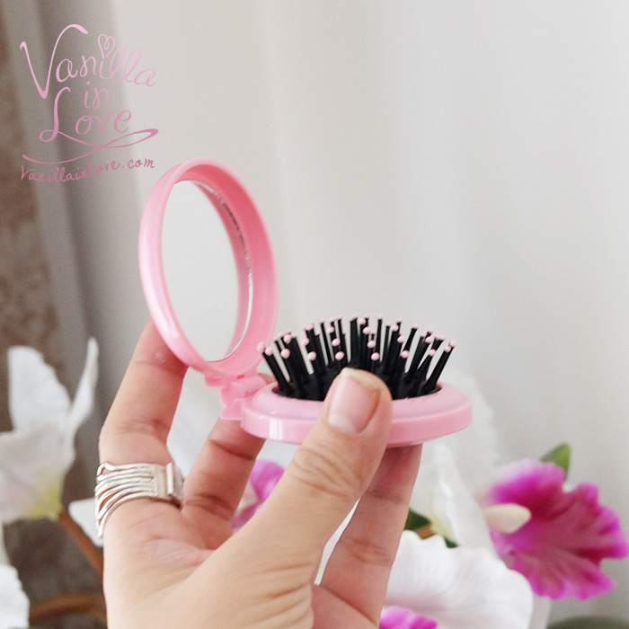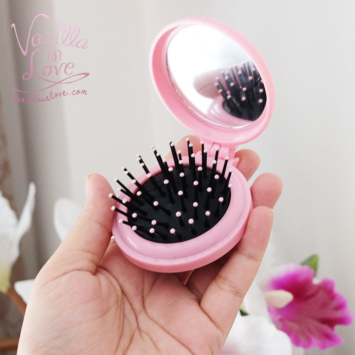 HB07 หวีพับ Vanilla in loveพร้อมกระจก ขนาดพกพา สีชมพู