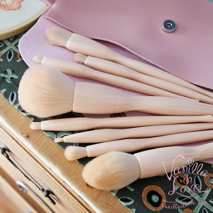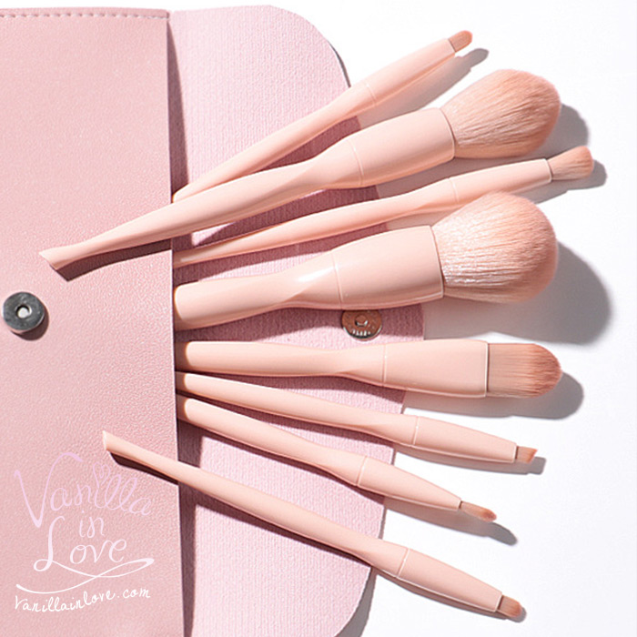 NL11 ชุดแปรงแต่งหน้า Vanilla in Love สีชมพู Pastel 8 ชิ้นพร้อมกระเป๋าแปรงสีชมพู