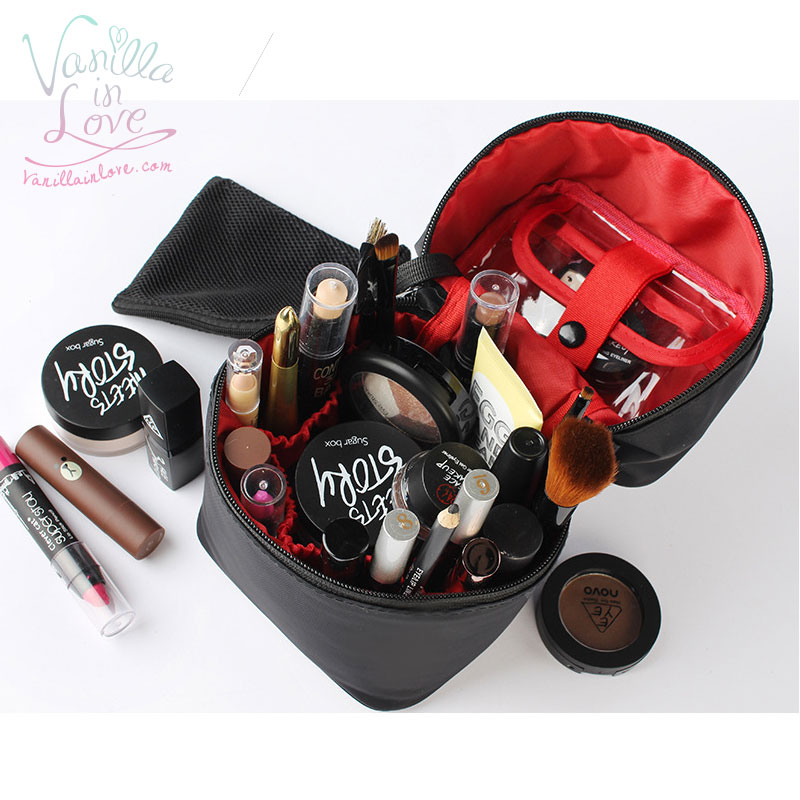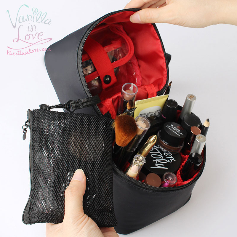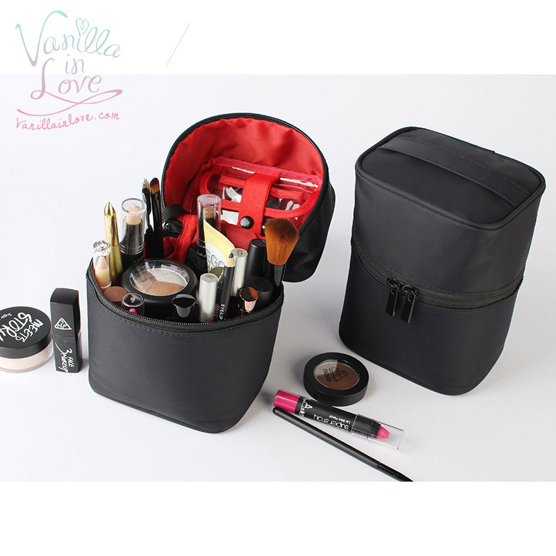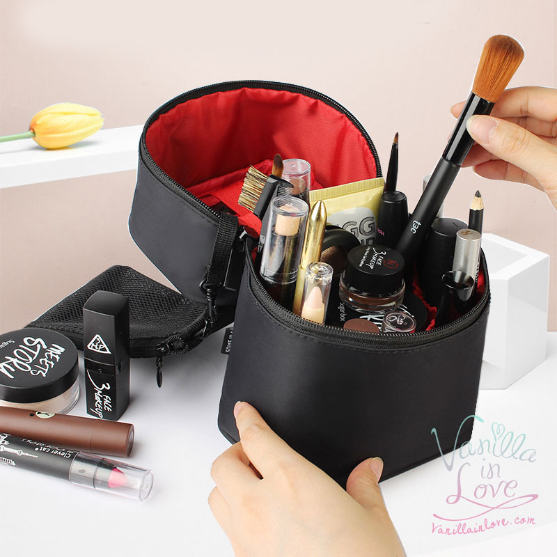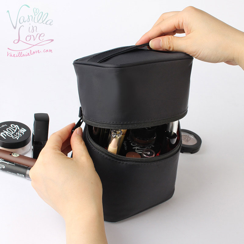 BG85 กระเป๋าเครื่องสำอาง ทรงสูง ผ้ากันน้ำ ขนาดพกพา สีดำ
