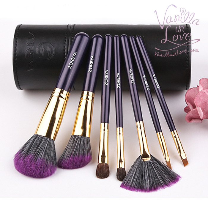 ชุดแปรงแต่งหน้ามาตรฐาน 7 ชิ้น สีดำม่วง ครบชุดทุกความต้องการ ขนสังเคราะห์