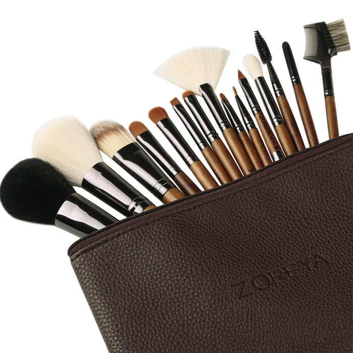 ZY04 Zoreya ชุดแปรงแต่งหน้า ครบชุด ด้ามไม้แท้ พร้อมกระเป๋าแปรง